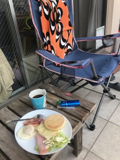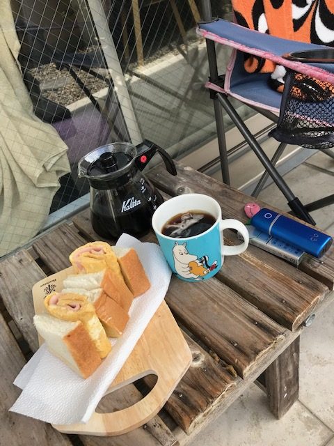 しかし、午前中だけは日光浴のために、お庭でブランチを取る事にしています。